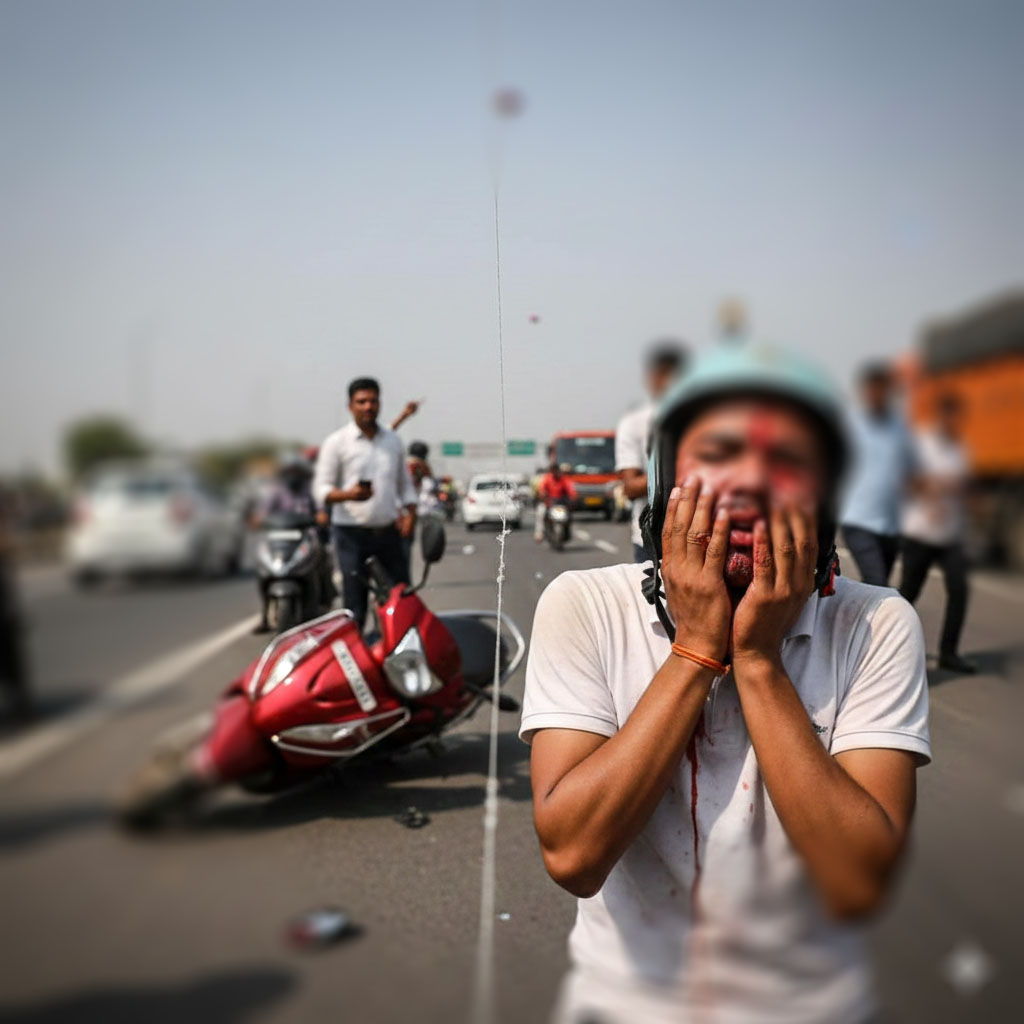 વાહનચાલકો સાવધાન! ઉતરાયણ પહેલા ચાઈનીઝ દોરીનો આતંક! યુવકના ચહેરા પર 25થી વધુ ટાંકા