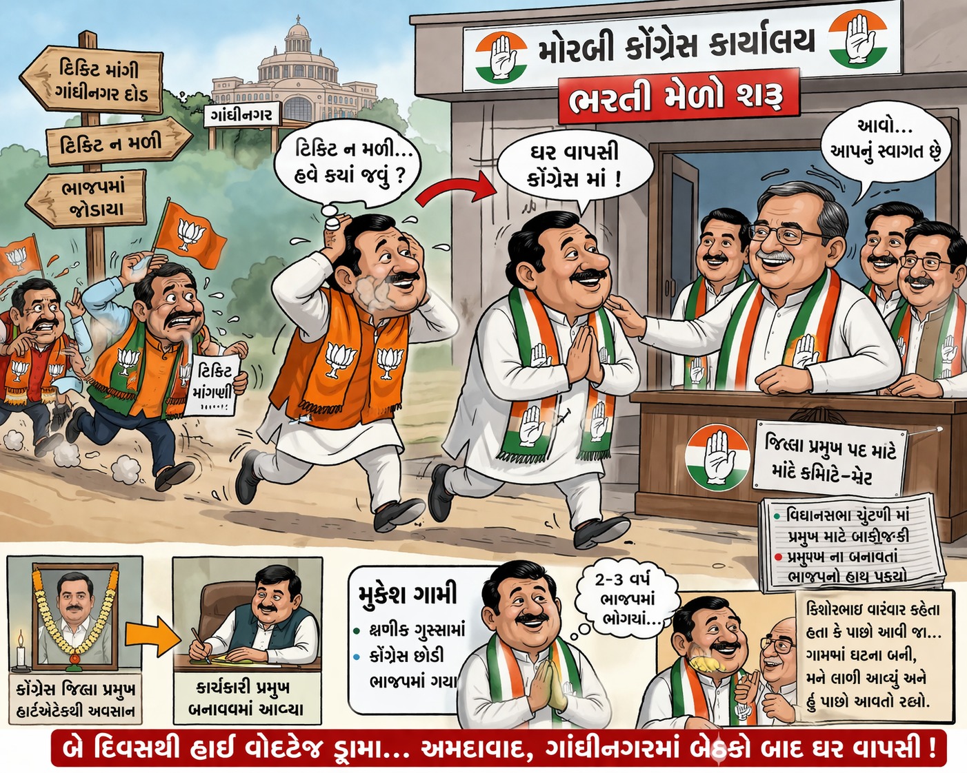 આ સમગ્ર ઘટનાક્રમમાં મુકેશ ગામીનું નામ ખાસ ચર્ચામાં છે. તેઓ ક્ષણિક ગુસ્સામાં કોંગ્રેસ છોડીને ભાજપમાં જોડાયા હતા, પરંતુ છેલ્લા બે-ત્રણ વર્ષ દરમિયાન ભાજપમાં અસંતોષનો સામનો કર્યા બાદ હવે ફરી કોંગ્રેસમાં ઘર વાપસી કરી છે.